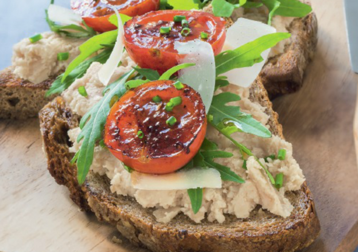 7. Выложите на тост. По желанию украсьте зеленью, помидорами черри.