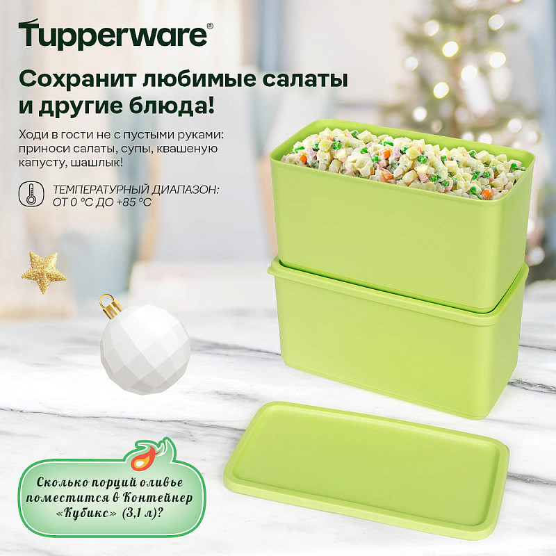 Герметичная крышка гарантирует сохранение свежести продуктов.