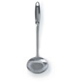 Эта большая ложка с отверстиями используется для извлечения готовых продуктов (картофеля, мяса, яиц и т.д.) из воды, для обжаривания во фритюре и бланширования овощей. Шумовкой также удобно снимать пену с поверхности бульона и варенья.