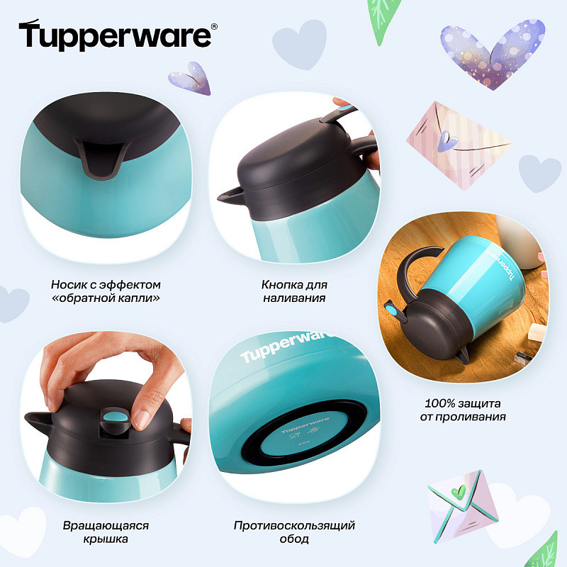 Благодаря противоскользящему силиконовому ободу Термокувшин устойчив на любой поверхности